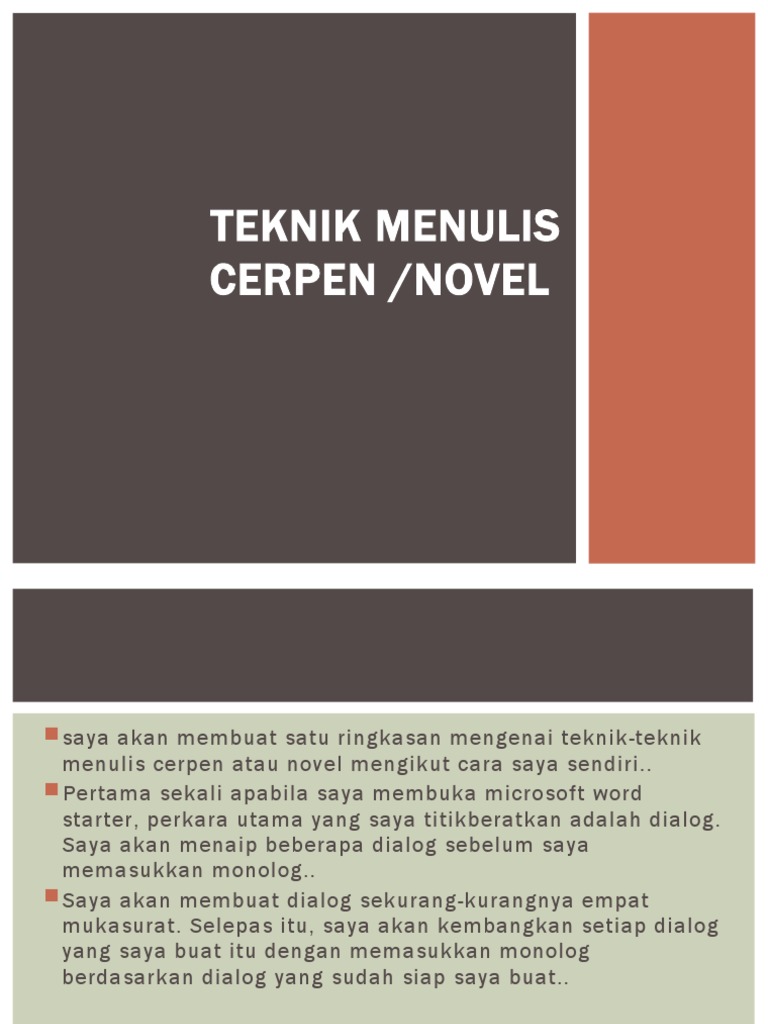 Untuk pengetahuan cerpen ini merupakan karya penulisan Datuk Dr. Anda Mungkin Juga Menyukai. Sebelum memulai menulis novel pertamamu ada enam tahap yang perlu dilalui.
